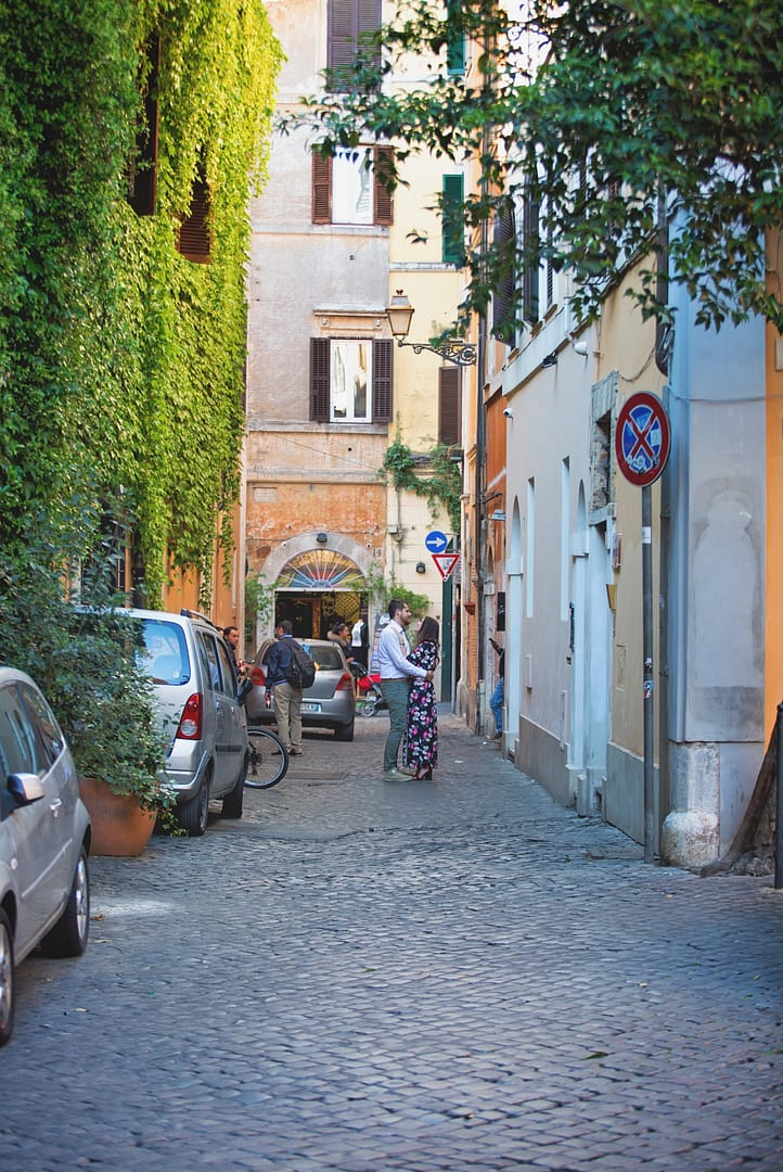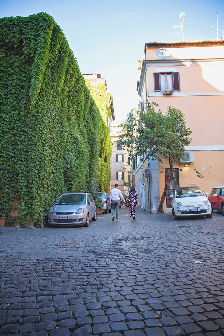 We left Trastevere, and as the shadows of the sunset stretched over the ivy-filled palaces, Andrea told me the story of their engagement ring, made with a diamond left by her grandfather with the hope that Andrea will give it to a woman full of quality who really loved him.